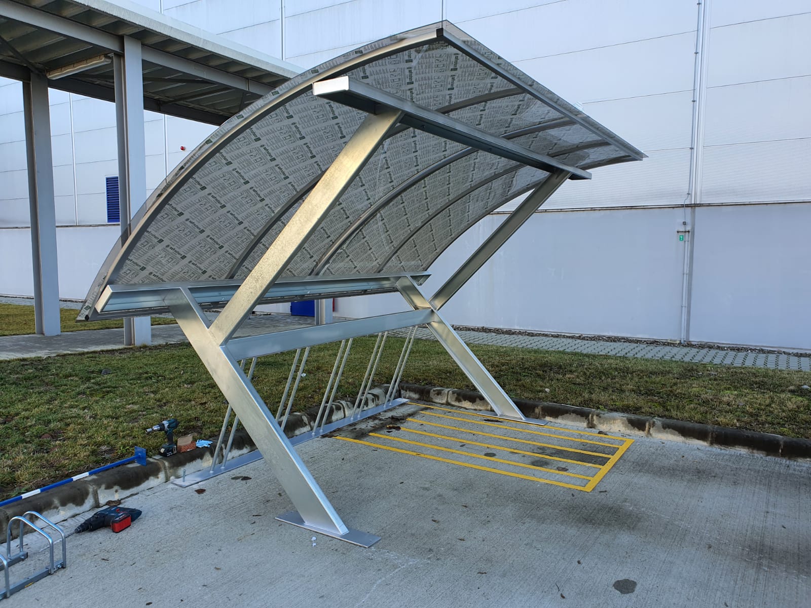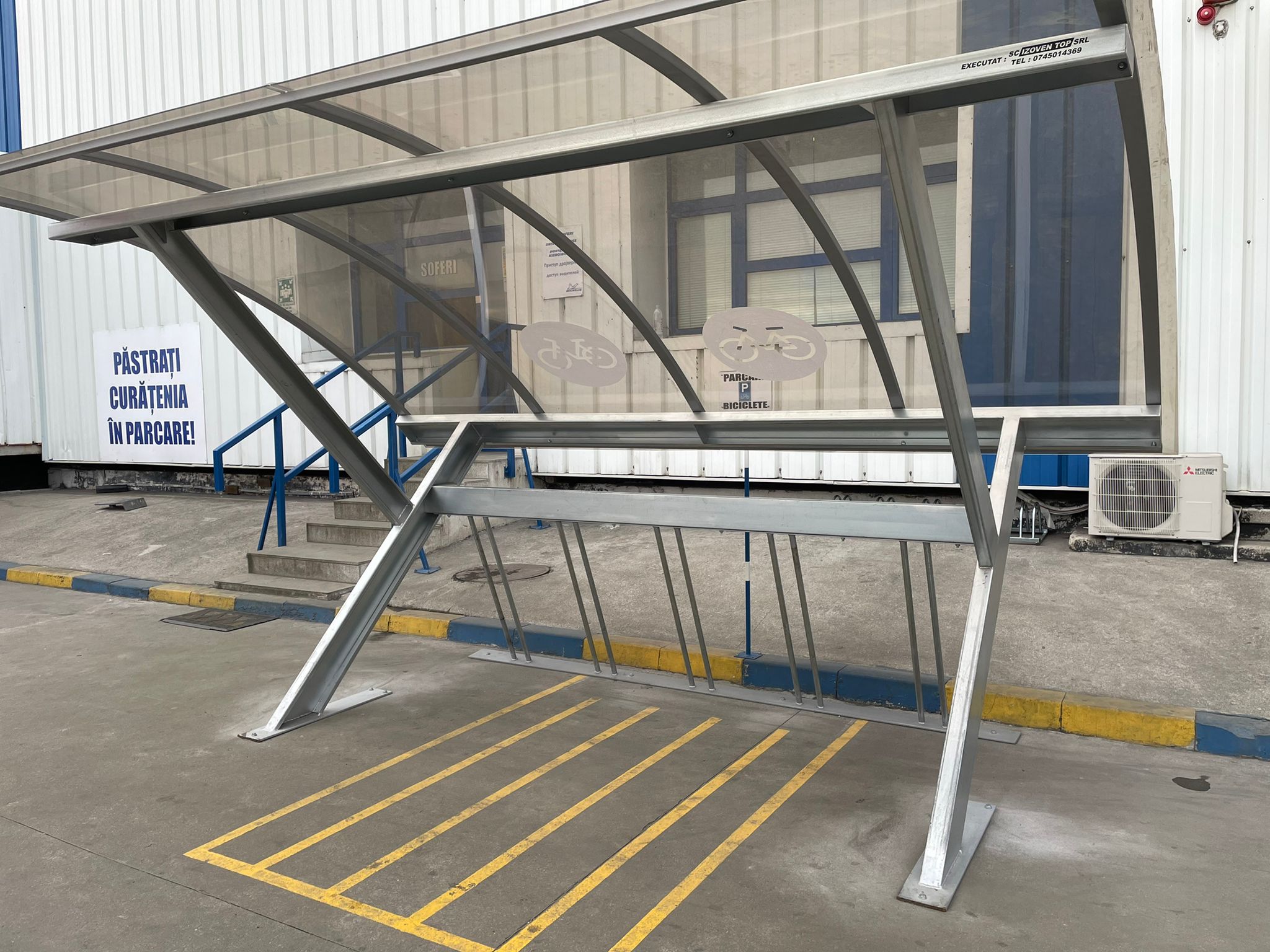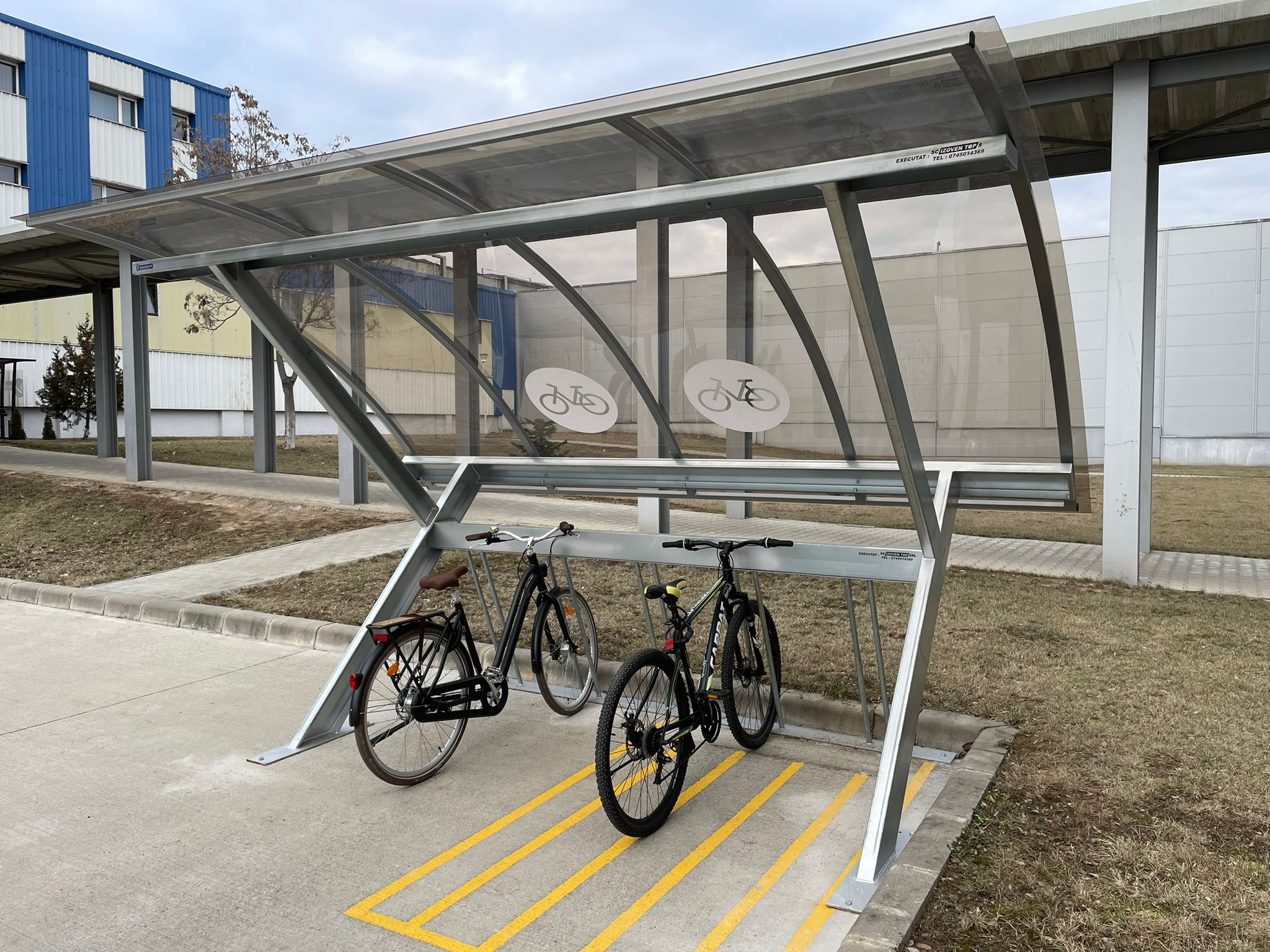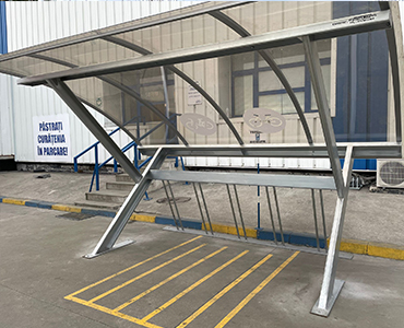 Executam spatii destinate parcarii de biciclete, avand copertina din policarbonat pe structura metalica precum si rastel metalic special conceput pentru parcarea bicicletelor.