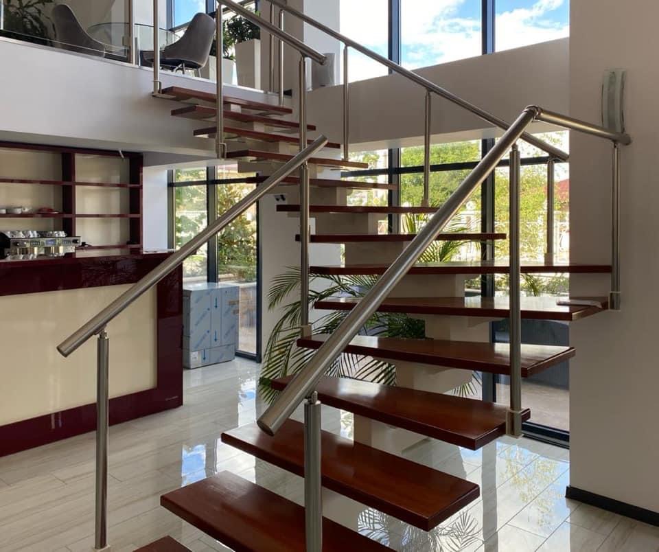 Executam la comanda scari de interior sau exterior, balustrade interioare sau exterioare din fier forjat, inox sau lemn stratificat de stejar sau fag. Scarile pot fi executate cu structura proprie(vanguri decupate), placate cu lemn de stejar sau fag pe scari turnate din beton sau scari cu structura metalica.