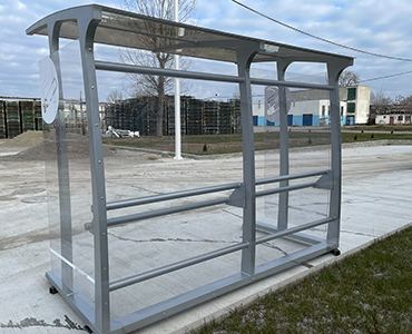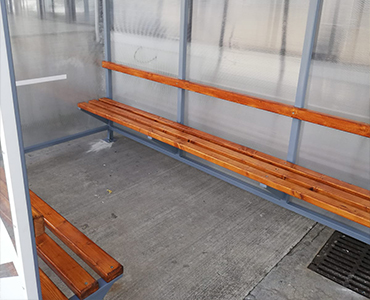 acoperisul placat cu tabla profilata sau policarbonat, pereti din sticla securizata sau policarbonat. Optional pot fi adaugate bancute precum si cosuri de gunoi si scrumat.